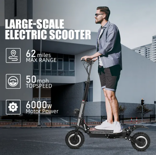 WHOSU Electric Scooter Adults, 6000W Dual Motor Up to 50 mph, 62 Miles Range, 4 Braking System, 11'Off-Road Folding E-Scooter for Adults, Portable E-Scooter
